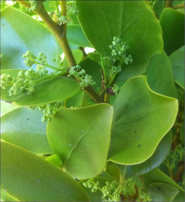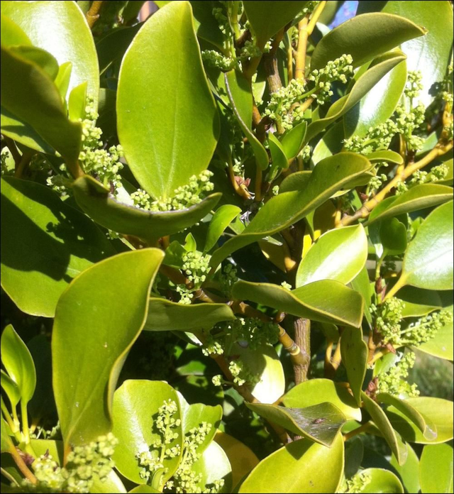 With small yellow flowers blooming in late spring and early summer, this plant is ideal for hedging in coastal areas due to its high salt tolerance. Its leathery leaves make it a low-maintenance option for gardens or patios.