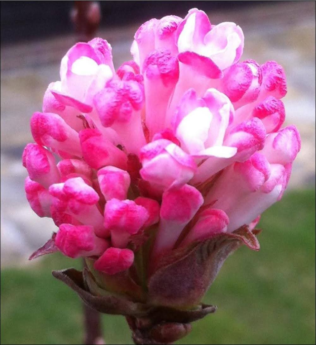 a stunning deciduous shrub renowned for its dark pink, sweetly scented flowers that bloom in winter.