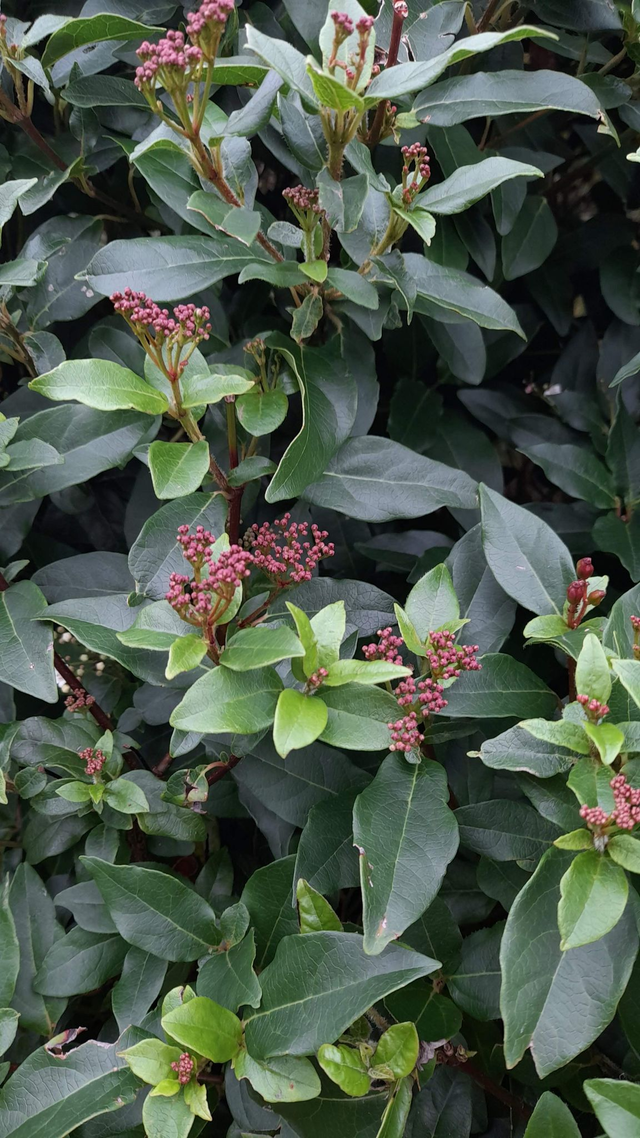 Check out Viburnum tinus, which is perfect for forming dense informal hedges up to 3-4 meters tall. The lush, glossy green leaves look great all year long, and from October through April this shrub produces masses of stunning white flowers from pink buds.